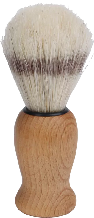 This shaving brush is made with waxed beechwood and plant fiber bristles.
