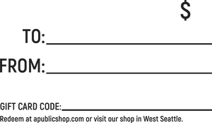 Reduce, Reuse, and Refill with a PUBLIC Gift Card. Choose between the following delivery methods: